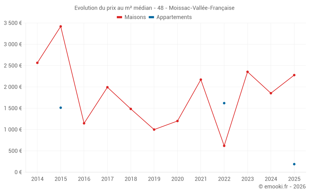 Carte des prix de l'immobilier dans la commune de Moissac-Vallée-Française, choississez une section pour voir les transactions par parcelle.