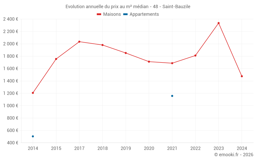 Prix médian sur les 2 transactions des 120 derniers mois.