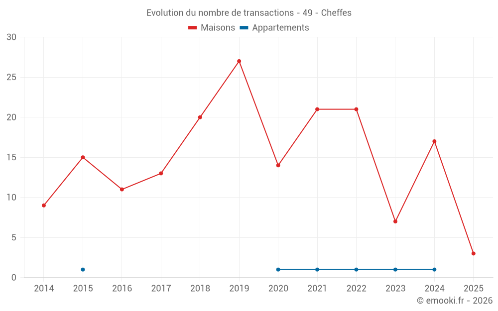 Carte des prix de l'immobilier dans la commune de Cheffes, choississez une section pour voir les transactions par parcelle.