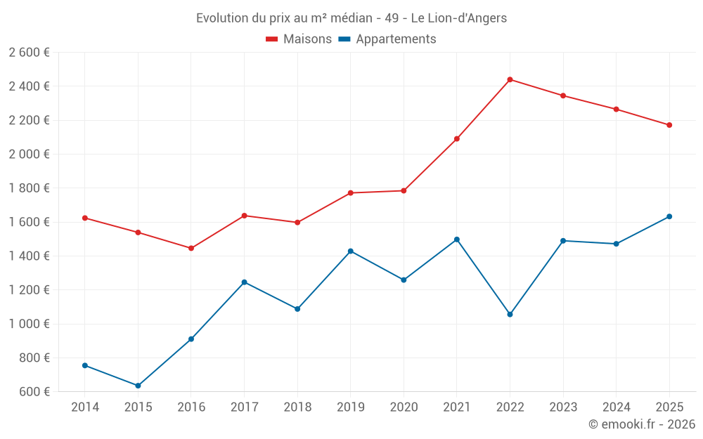 Carte des prix de l'immobilier dans la commune du Lion-d'Angers, choississez une section pour voir les transactions par parcelle.