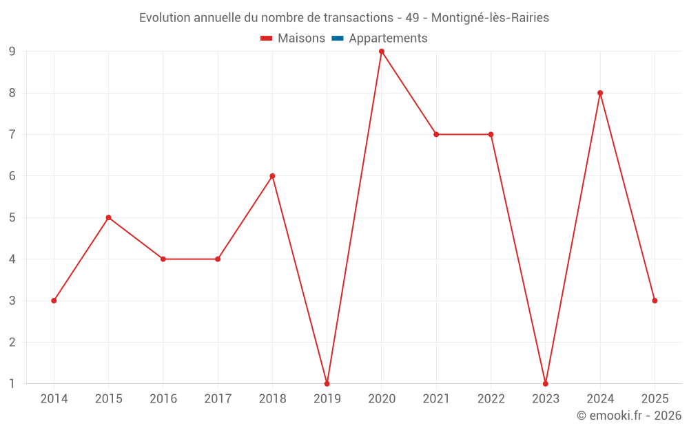 Carte des prix de l'immobilier dans la commune de Montigné-lès-Rairies, choississez une section pour voir les transactions par parcelle.
