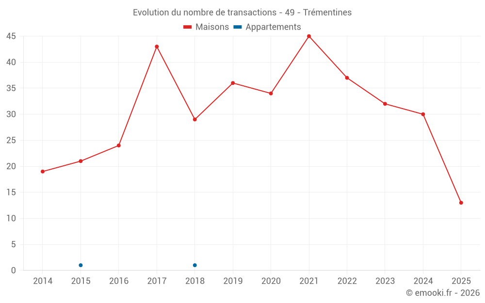 Carte des prix de l'immobilier dans la commune de Trémentines, choississez une section pour voir les transactions par parcelle.