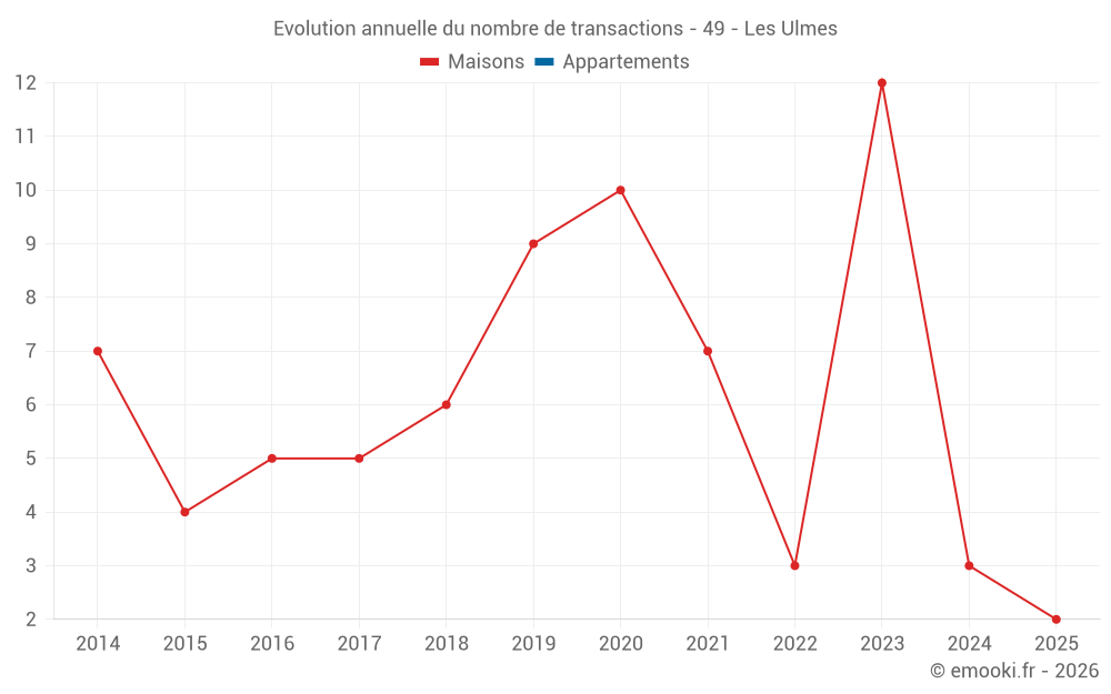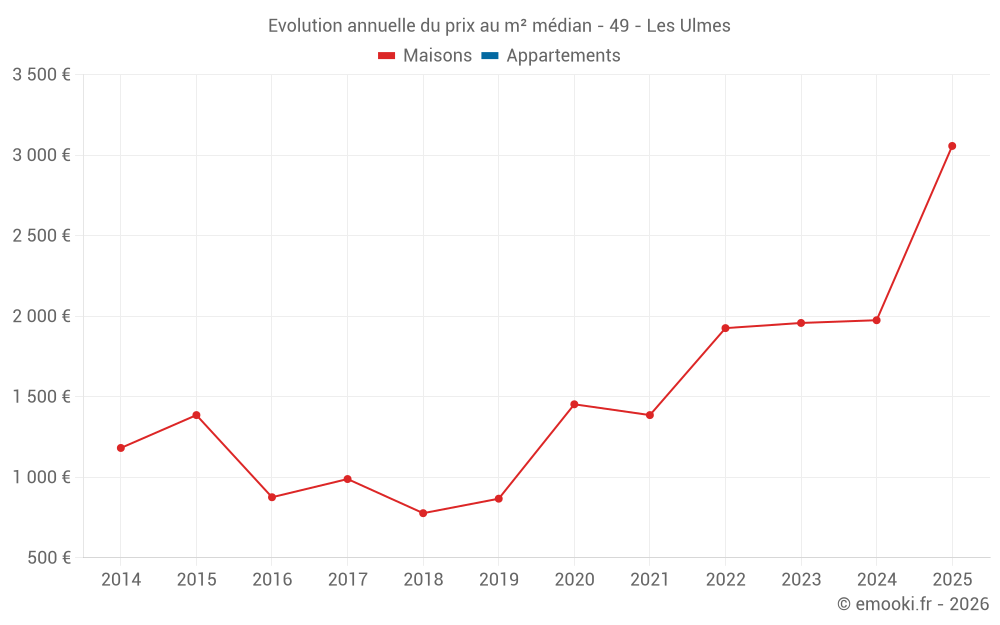 Carte des prix de l'immobilier dans la commune des Ulmes, choississez une section pour voir les transactions par parcelle.