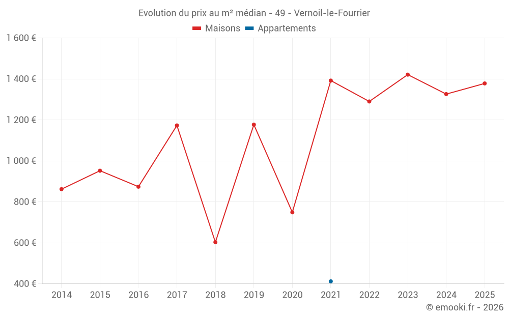 Carte des prix de l'immobilier dans la commune de Vernoil-le-Fourrier, choississez une section pour voir les transactions par parcelle.