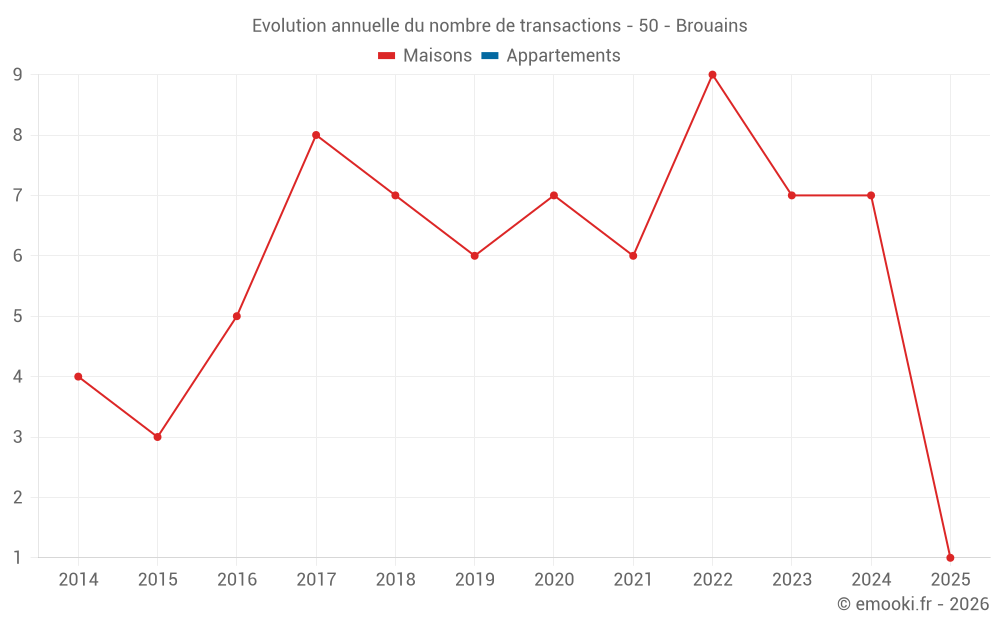 Carte des prix de l'immobilier dans la commune de Brouains, choississez une section pour voir les transactions par parcelle.
