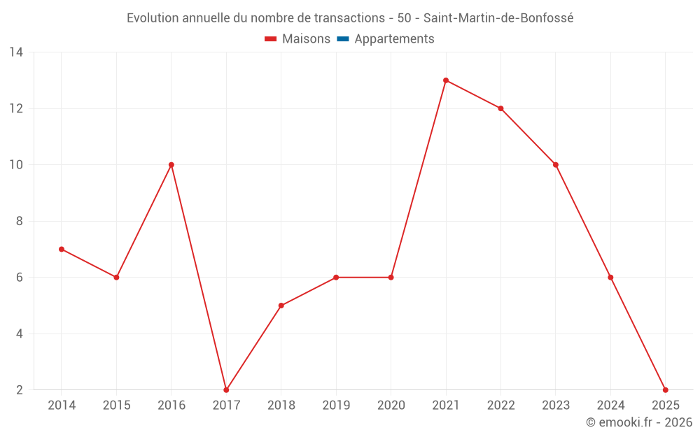 Le prix médian sur les 15 transactions de maisons des 24 derniers mois dans la commune de Saint-Martin-de-Bonfossé était de 1 458 € par mètre carré pour une valeur foncière médiane de 210 000 €. Sur cette période 60% des transactions se sont situées entre 1 285 et 2 267 € par mètre carré (du 2ème au 8ème déciles).