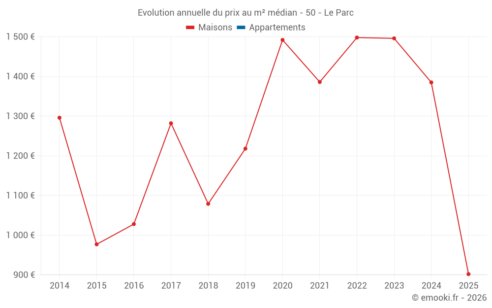 Le prix médian sur les 24 transactions de maisons des 24 derniers mois dans la commune du Parc était de 1 370 € par mètre carré pour une valeur foncière médiane de 112 500 €. Sur cette période 60% des transactions se sont situées entre 740 et 1 599 € par mètre carré (du 2ème au 8ème déciles).