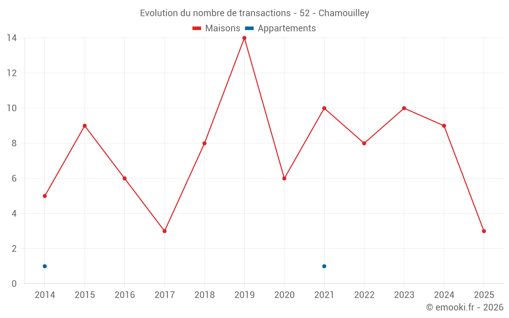 Carte des prix de l'immobilier dans la commune de Chamouilley, choississez une section pour voir les transactions par parcelle.