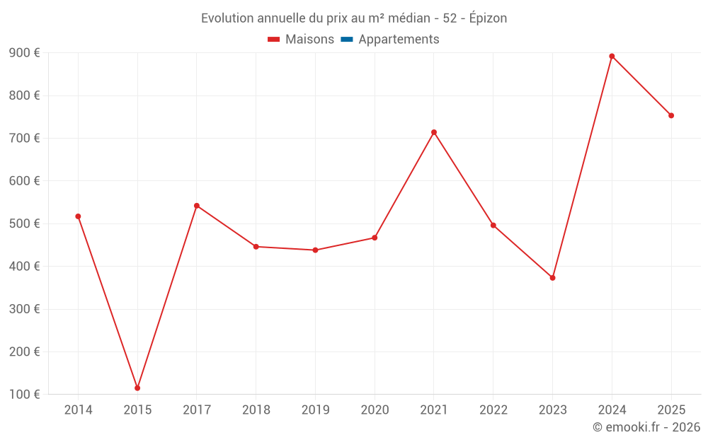 Evolution du prix au m² médian des maisons