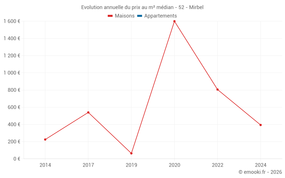 Evolution du prix au m² médian des maisons