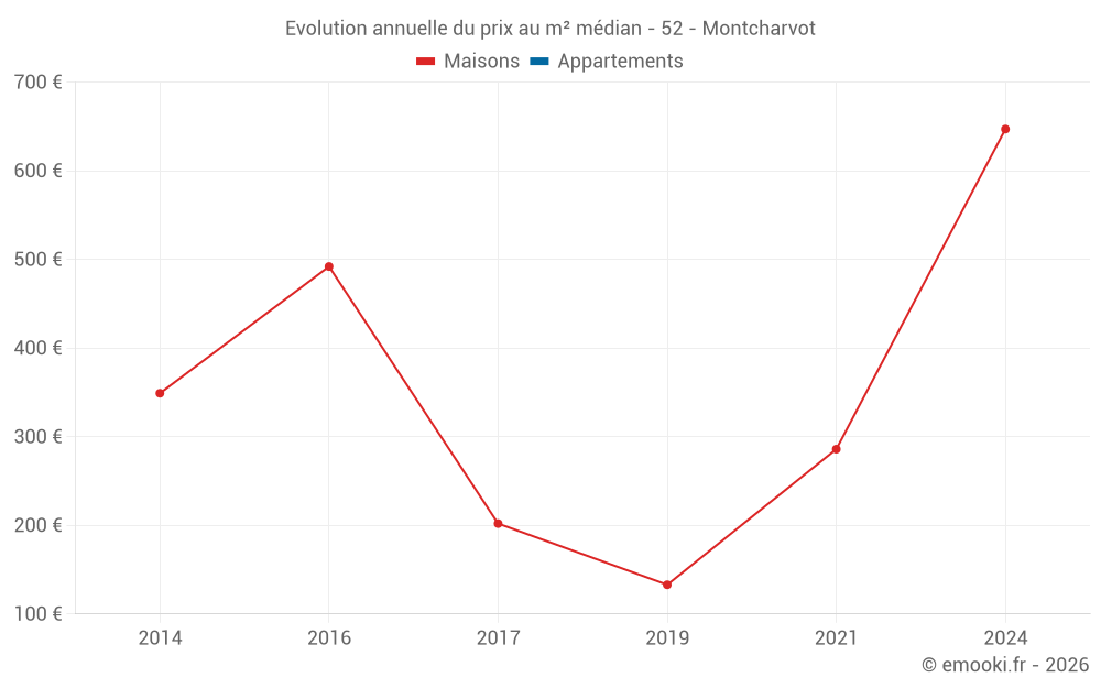 Attention, dernière année incomplète. Projections effectuées sur la base des proportions entre semestres de l'année précédente au niveau départemental/national et par catégorie de bien.