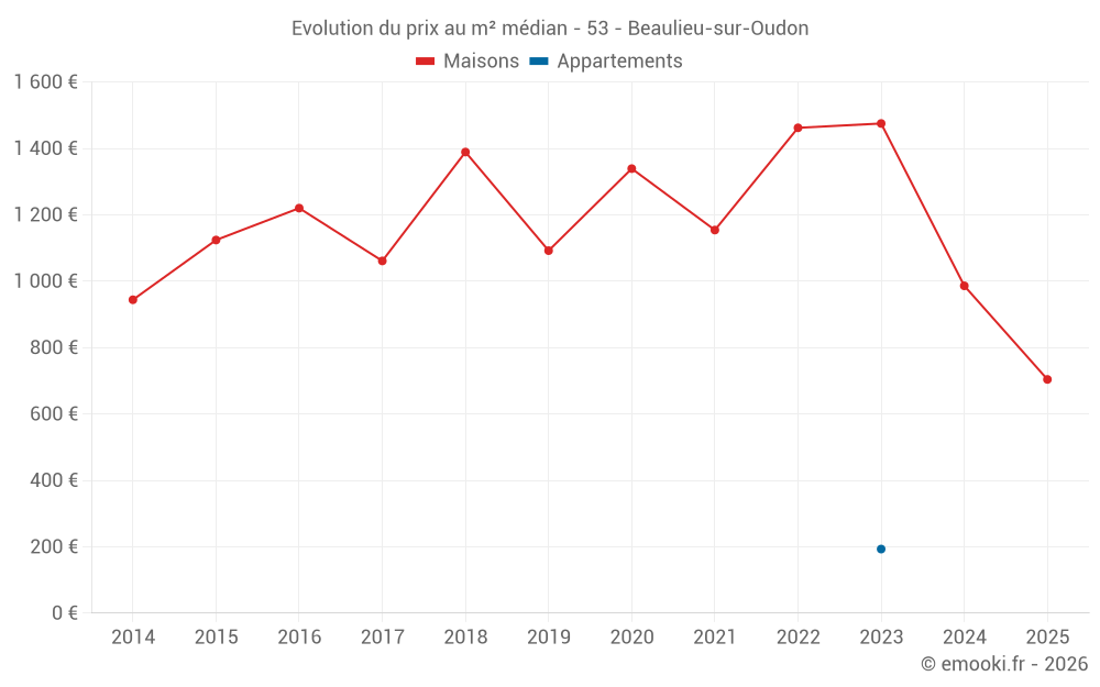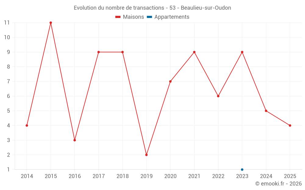 Carte des prix de l'immobilier dans la commune de Beaulieu-sur-Oudon, choississez une section pour voir les transactions par parcelle.