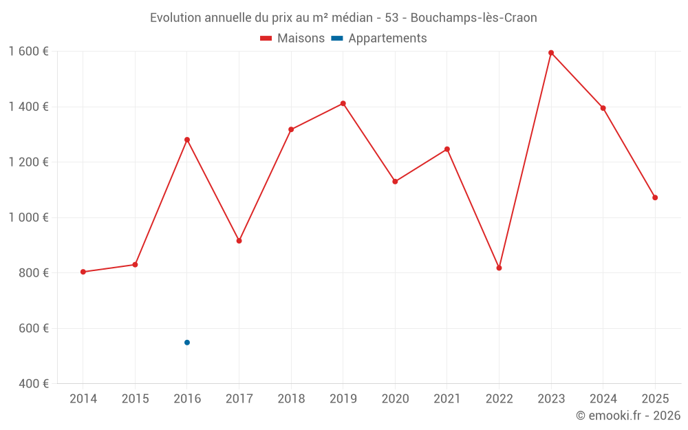 Carte des prix de l'immobilier dans la commune de Bouchamps-lès-Craon, choississez une section pour voir les transactions par parcelle.