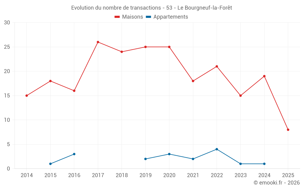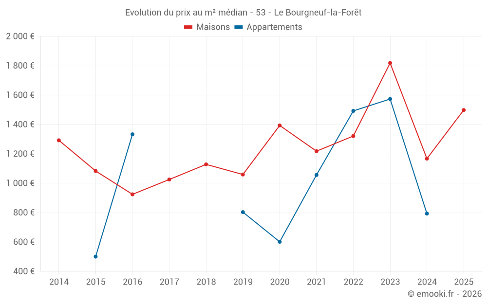 Carte des prix de l'immobilier dans la commune du Bourgneuf-la-Forêt, choississez une section pour voir les transactions par parcelle.