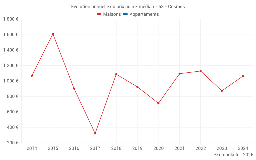 Carte des prix de l'immobilier dans la commune de Cosmes, choississez une section pour voir les transactions par parcelle.
