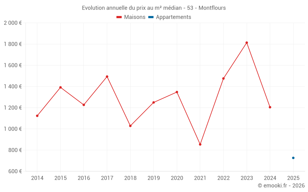 Carte des prix de l'immobilier dans la commune de Montflours, choississez une section pour voir les transactions par parcelle.