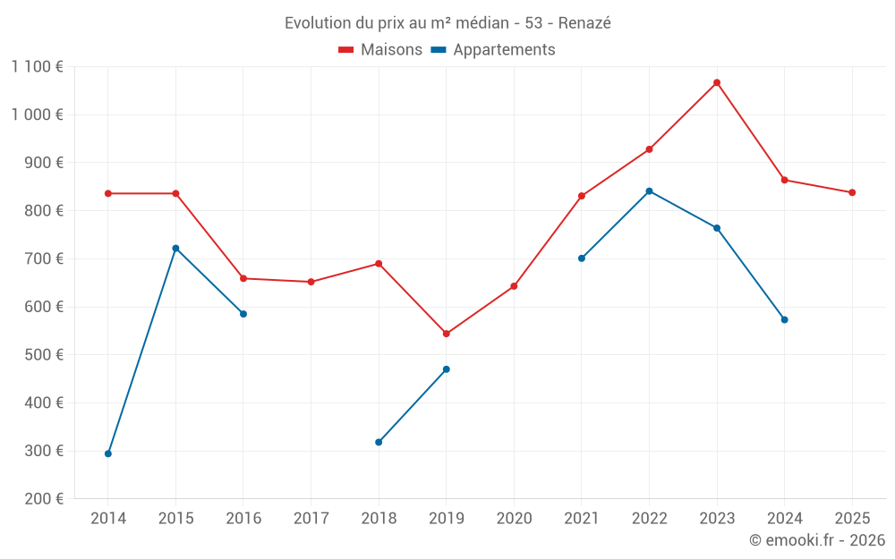 Carte des prix de l'immobilier dans la commune de Renazé, choississez une section pour voir les transactions par parcelle.