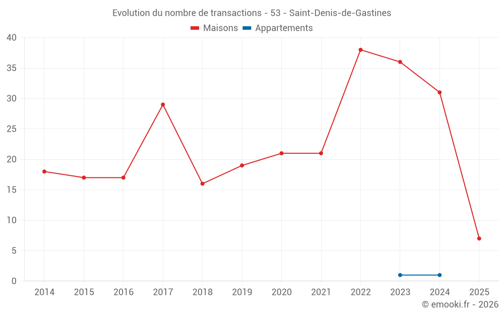 Carte des prix de l'immobilier dans la commune de Saint-Denis-de-Gastines, choississez une section pour voir les transactions par parcelle.