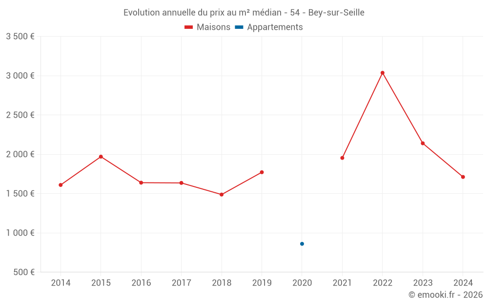 Attention, dernière année incomplète. Projections effectuées sur la base des proportions entre semestres de l'année précédente au niveau départemental/national et par catégorie de bien.