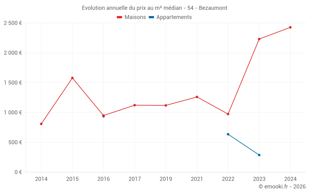 Evolution du prix au m² médian des maisons