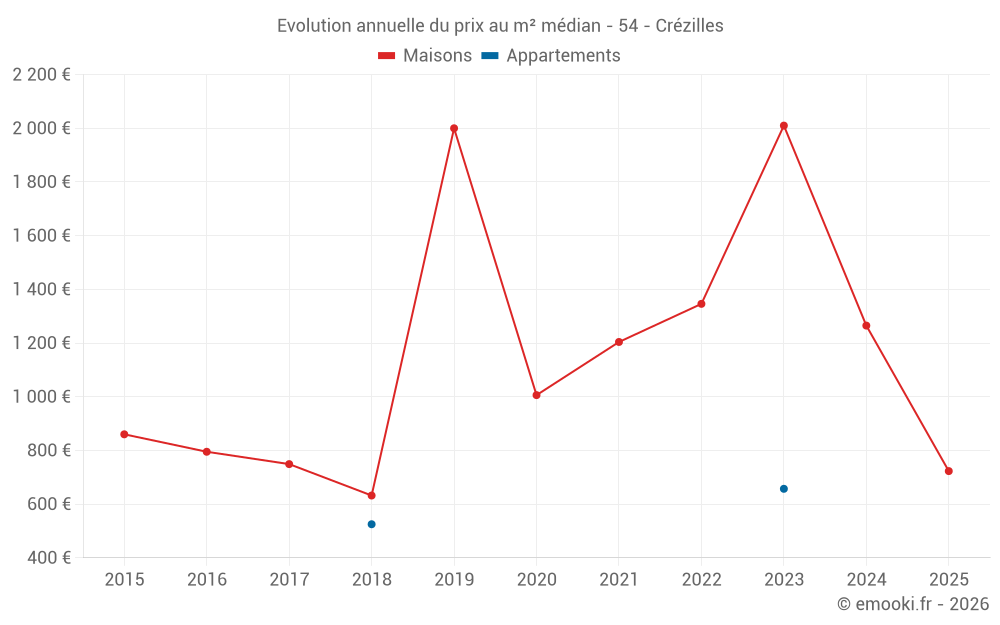 Evolution du prix au m² médian des maisons
