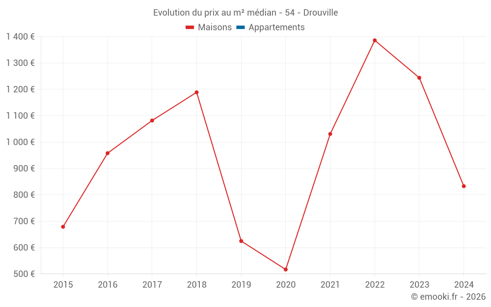 Attention, dernière année incomplète. Projections effectuées sur la base des proportions entre semestres de l'année précédente au niveau départemental/national et par catégorie de bien.