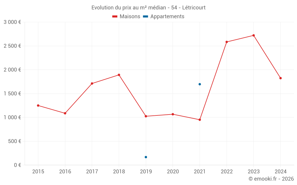 Carte des prix de l'immobilier dans la commune de Létricourt, choississez une section pour voir les transactions par parcelle.