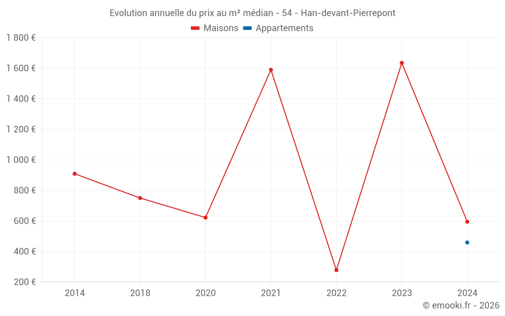 Attention, dernière année incomplète. Projections effectuées sur la base des proportions entre semestres de l'année précédente au niveau départemental/national et par catégorie de bien.