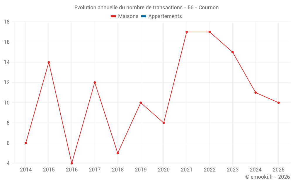 Le prix médian sur les 18 transactions de maisons des 12 derniers mois dans la commune de Cournon était de 2 000 € par mètre carré pour une valeur foncière médiane de 160 162 €. Sur cette période 60% des transactions se sont situées entre 1 156 et 2 164 € par mètre carré (du 2ème au 8ème déciles).