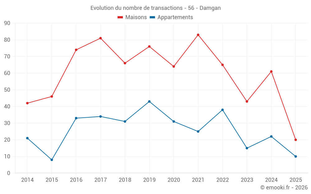 Attention, dernière année incomplète. Projections effectuées sur la base des proportions entre semestres de l'année précédente au niveau départemental/national et par catégorie de bien.
