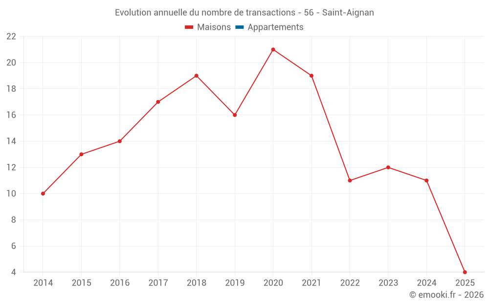 Le prix médian sur les 21 transactions de maisons des 24 derniers mois dans la commune de Saint-Aignan était de 1 417 € par mètre carré pour une valeur foncière médiane de 138 000 €. Sur cette période 60% des transactions se sont situées entre 1 037 et 1 846 € par mètre carré (du 2ème au 8ème déciles).