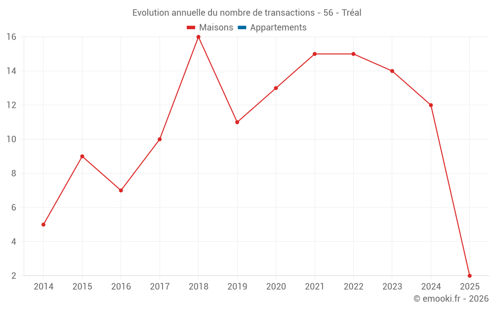 Le prix médian sur les 18 transactions de maisons des 24 derniers mois dans la commune de Tréal était de 1 272 € par mètre carré pour une valeur foncière médiane de 97 500 €. Sur cette période 60% des transactions se sont situées entre 850 et 2 093 € par mètre carré (du 2ème au 8ème déciles).