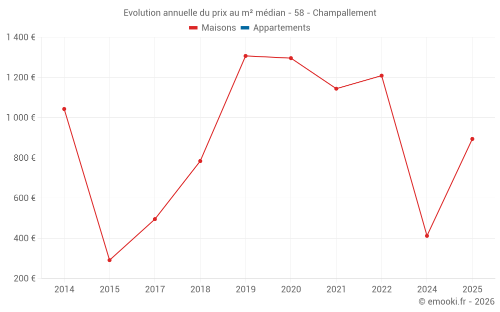 Evolution du prix au m² médian des maisons