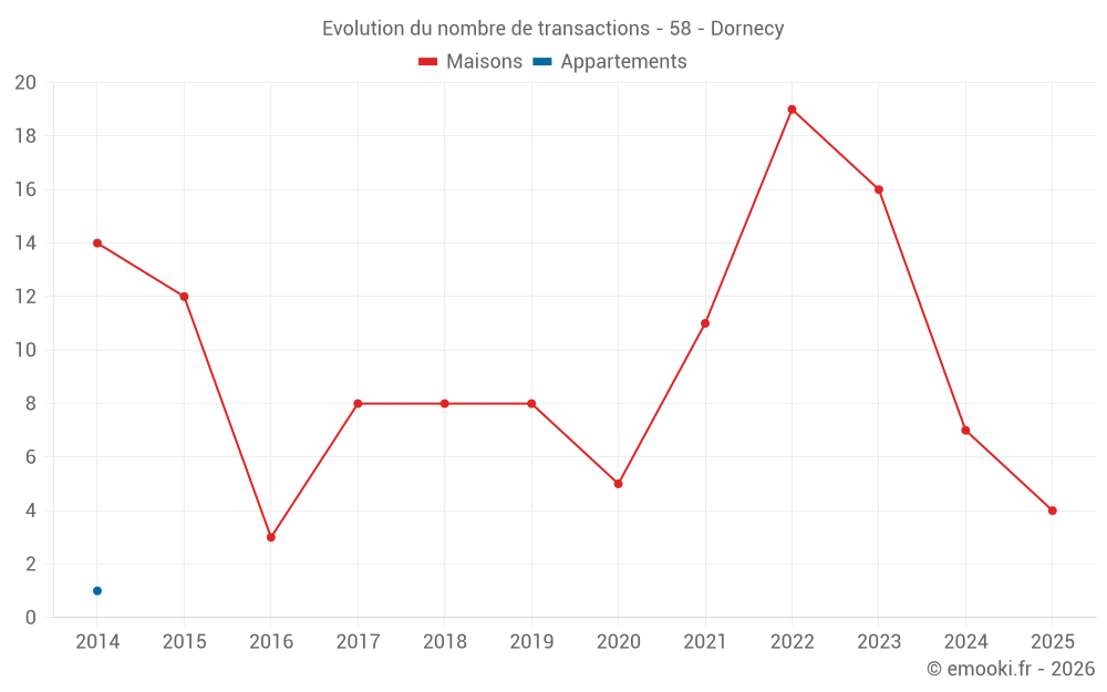 Carte des prix de l'immobilier dans la commune de Dornecy, choississez une section pour voir les transactions par parcelle.