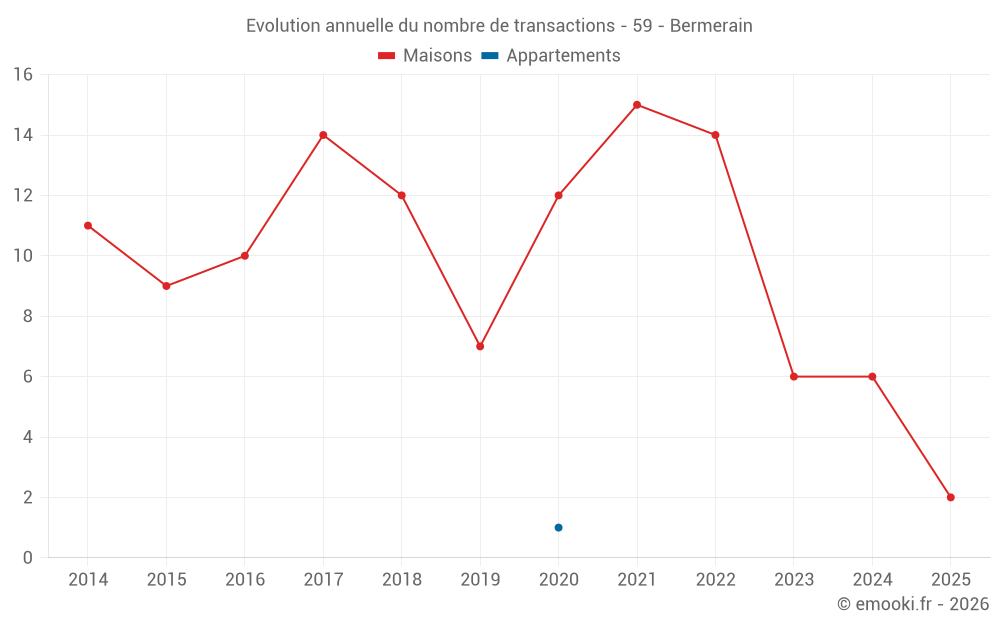 Carte des prix de l'immobilier dans la commune de Bermerain, choississez une section pour voir les transactions par parcelle.