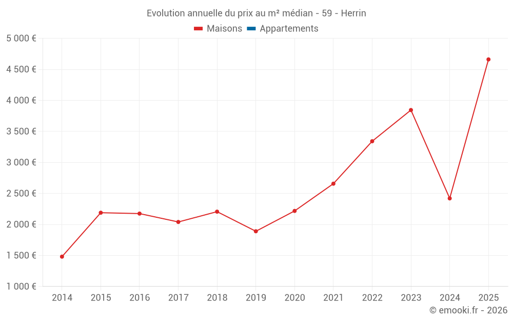 Evolution du prix au m² médian des maisons