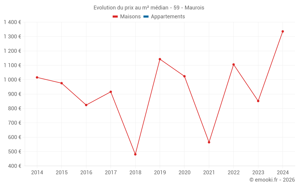 Carte des prix de l'immobilier dans la commune de Maurois, choississez une section pour voir les transactions par parcelle.