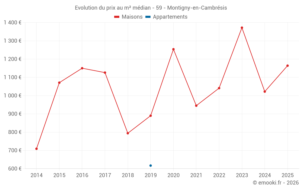 Carte des prix de l'immobilier dans la commune de Montigny-en-Cambrésis, choississez une section pour voir les transactions par parcelle.