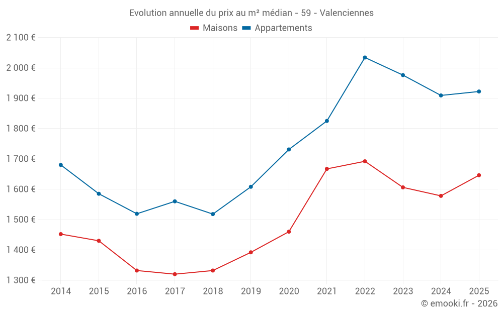 Quel est le prix au m2 des appartements à Valenciennes ?