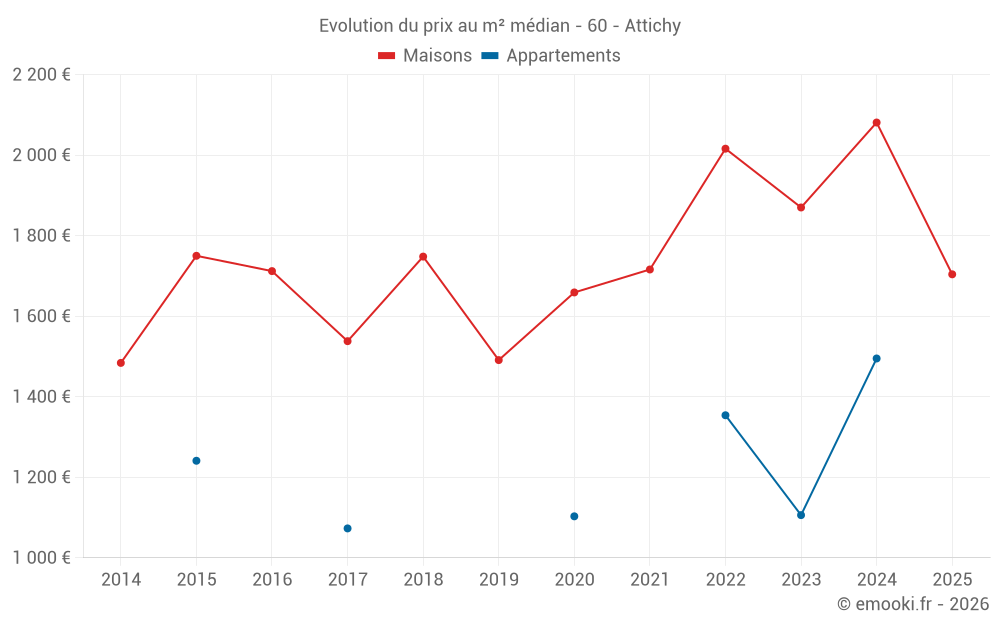 Carte des prix de l'immobilier dans la commune d'Attichy, choississez une section pour voir les transactions par parcelle.