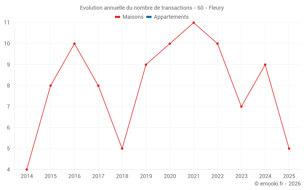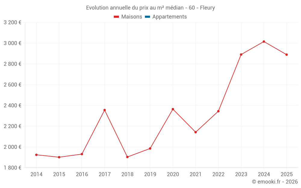 Le prix médian sur les 18 transactions de maisons des 24 derniers mois dans la commune de Fleury était de 2 934 € par mètre carré pour une valeur foncière médiane de 236 000 €. Sur cette période 60% des transactions se sont situées entre 2 610 et 3 296 € par mètre carré (du 2ème au 8ème déciles).