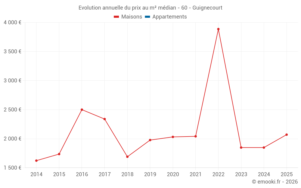Carte des prix de l'immobilier dans la commune de Guignecourt, choississez une section pour voir les transactions par parcelle.