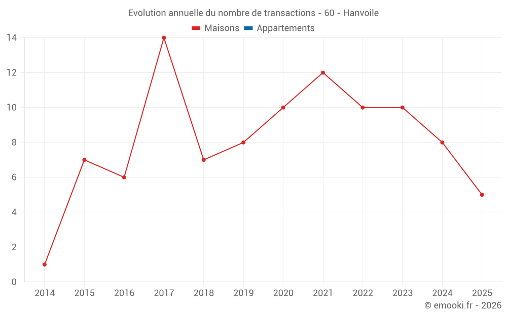 Le prix médian sur les 20 transactions de maisons des 24 derniers mois dans la commune de Hanvoile était de 1 602 € par mètre carré pour une valeur foncière médiane de 161 500 €. Sur cette période 60% des transactions se sont situées entre 1 110 et 2 320 € par mètre carré (du 2ème au 8ème déciles).