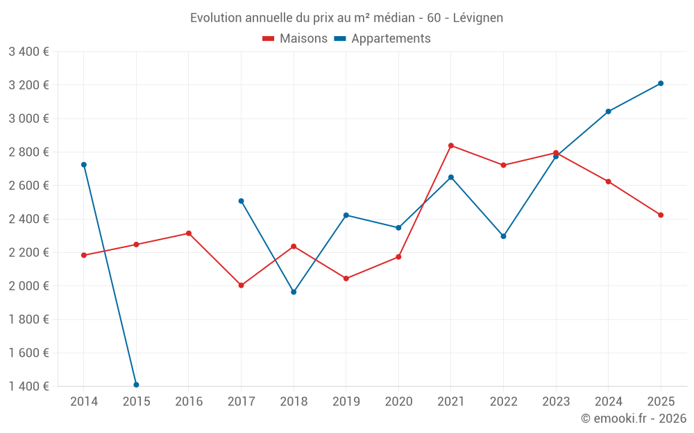 Le prix médian sur les 22 transactions de maisons des 24 derniers mois dans la commune de Lévignen était de 2 726 € par mètre carré pour une valeur foncière médiane de 237 450 €. Sur cette période 60% des transactions se sont situées entre 1 831 et 2 931 € par mètre carré (du 2ème au 8ème déciles).