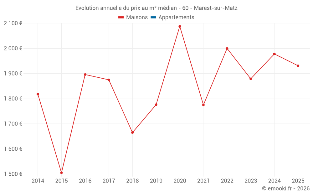 Le prix au m² des maisons a diminué de 7.5% depuis 5 ans, mais il a augmenté de 28% en 10 ans.