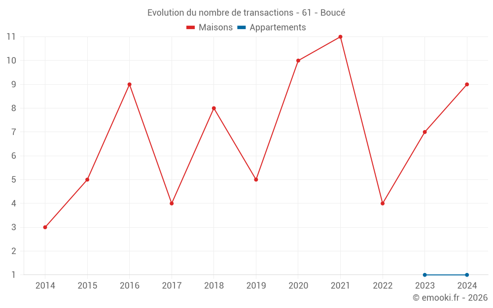 Carte des prix de l'immobilier dans la commune de Boucé, choississez une section pour voir les transactions par parcelle.