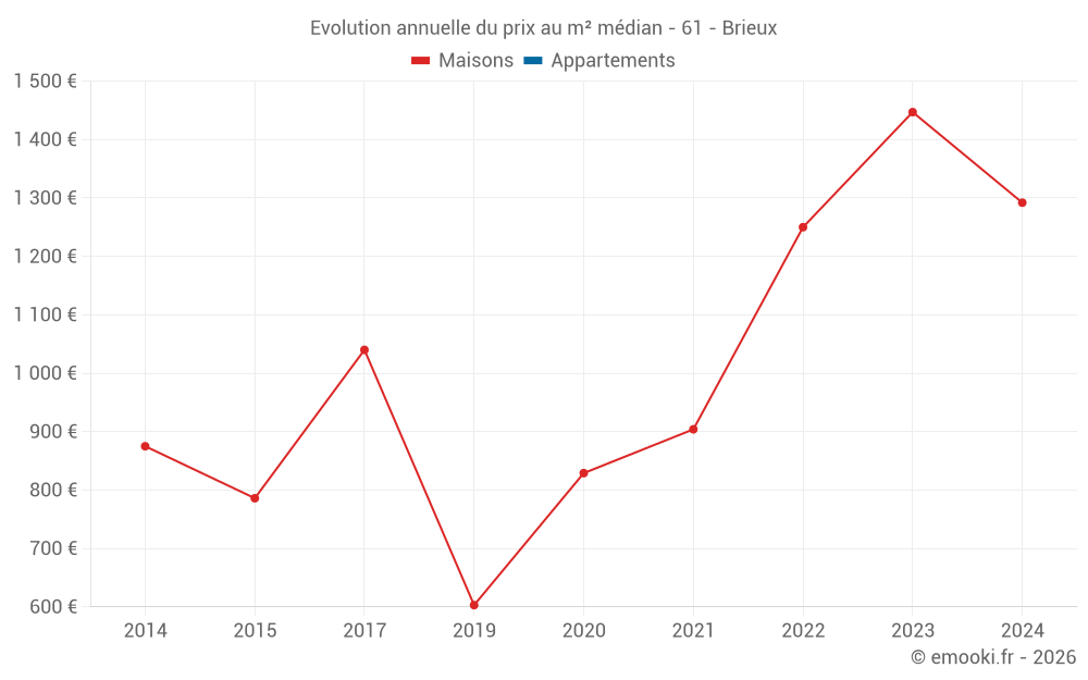 Evolution du prix au m² médian des maisons