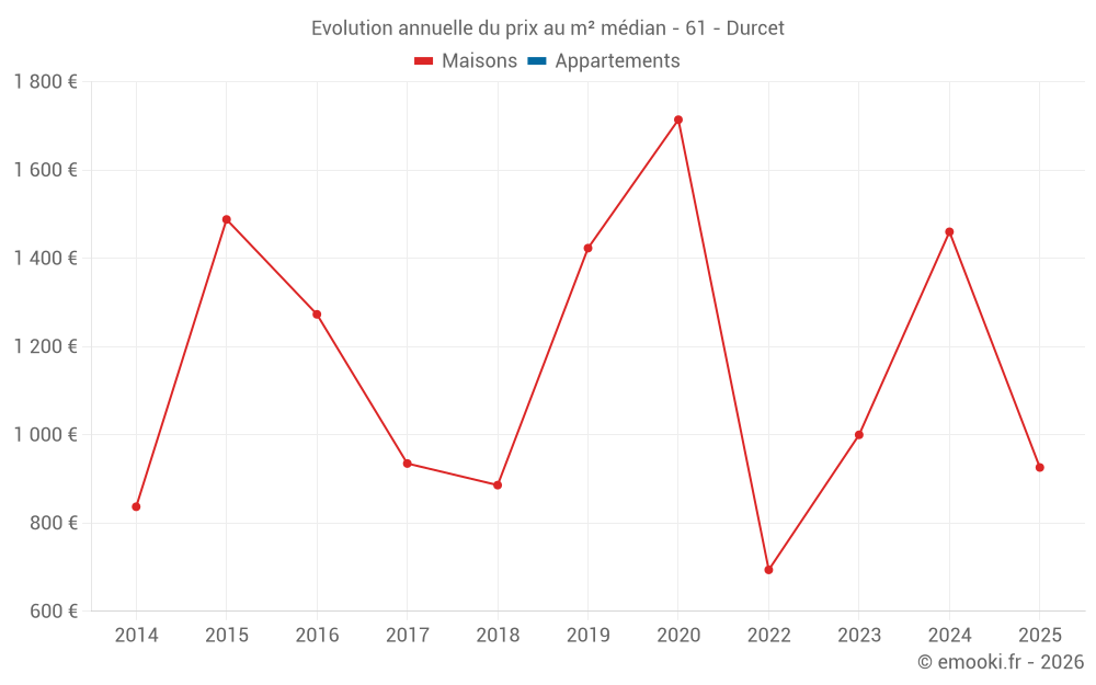 Le prix au m² des maisons a diminué de 37% depuis 1 an, mais il a augmenté de 33% en 3 ans.