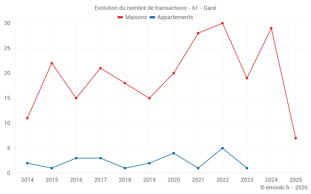 Attention, dernière année incomplète. Projections effectuées sur la base des proportions entre semestres de l'année précédente au niveau départemental/national et par catégorie de bien.