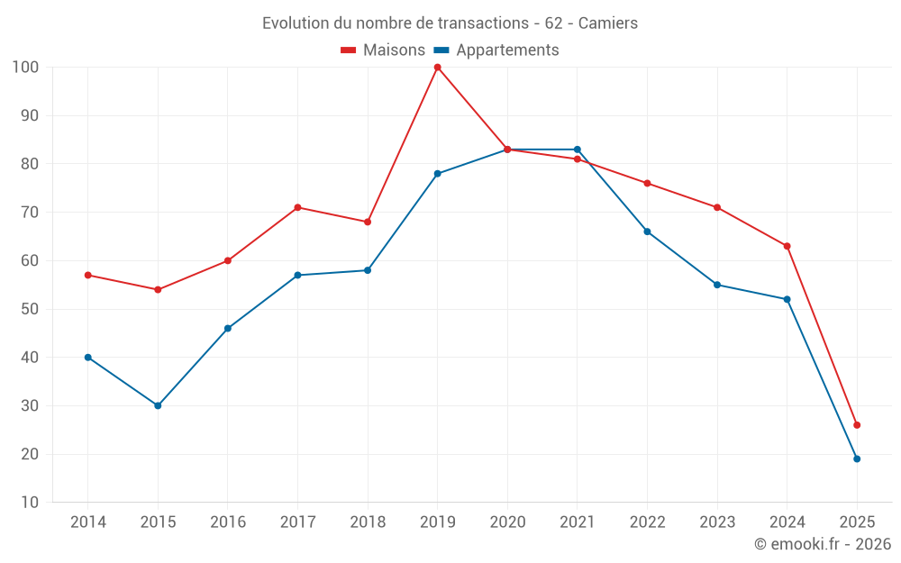 Attention, dernière année incomplète. Projections effectuées sur la base des proportions entre semestres de l'année précédente au niveau départemental/national et par catégorie de bien.
